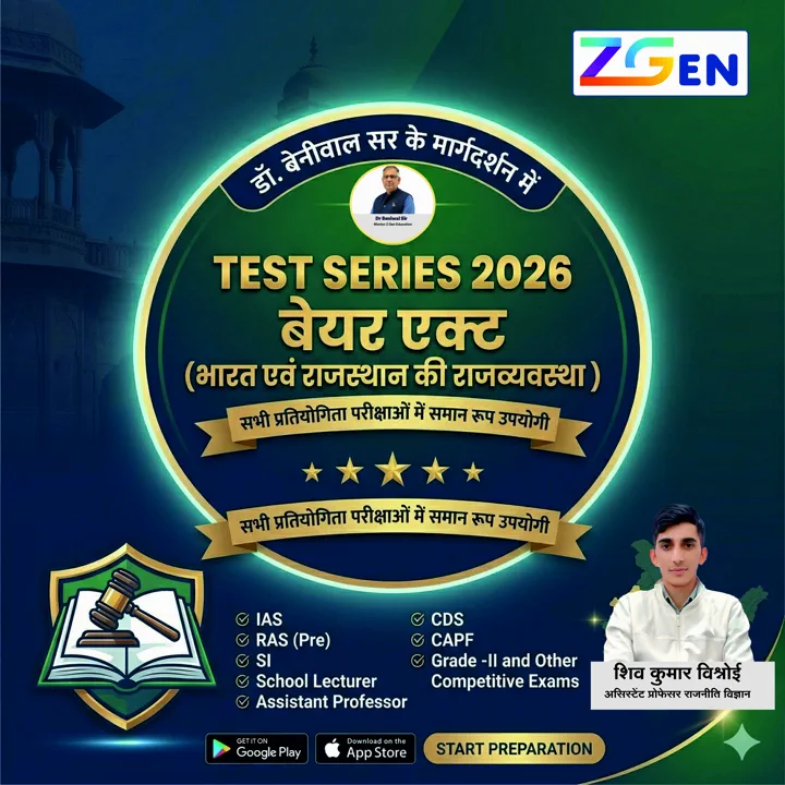 ЁЯУЪ TEST SERIES 2026 рдмреЗрдпрд░ рдПрдХреНрдЯ (рднрд╛рд░рдд рдПрд╡рдВ рд░рд╛рдЬрд╕реНрдерд╛рди рдХреА рд░рд╛рдЬрд╡реНрдпрд╡рд╕реНрдерд╛) рдбреЙ. рдмреЗрдиреАрд╡рд╛рд▓ рд╕рд░ рдХреЗ рдорд╛рд░реНрдЧрджрд░реНрд╢рди рдореЗрдВ рдЗрд╕ рдЯреЗрд╕реНрдЯ рд╕реАрд░реАрдЬрд╝ рдХреЗ рдЕрдВрддрд░реНрдЧрдд рд╕рдореНрдкреВрд░реНрдг рдЕрдзреНрдпрдпрди рд╕рд╛рдордЧреНрд░реА PDF Download Mode рдореЗрдВ рдЙрдкрд▓рдмреНрдз рдХрд░рд╡рд╛рдИ рдЬрд╛рдПрдЧреА, рдЬрд┐рд╕рдХрд╛ рдкреНрд░рд┐рдВрдЯ рднреА рдЖрд╕рд╛рдиреА рд╕реЗ рдирд┐рдХрд╛рд▓рд╛ рдЬрд╛ рд╕рдХрддрд╛ рд╣реИред рдпрд╣ рдЯреЗрд╕реНрдЯ рд╕реАрд░реАрдЬрд╝ рдирд┐рдореНрди рдкреНрд░рддрд┐рдпреЛрдЧреА рдкрд░реАрдХреНрд╖рд╛рдУрдВ рдХреЗ рд▓рд┐рдП рд╕рдорд╛рди рд░реВрдк рд╕реЗ рдЙрдкрдпреЛрдЧреА рд╣реИ: тАиIAS | RAS (Pre) | SI | School Lecturer | Assistant Professor | CDS | CAPF | Grade-II рдПрд╡рдВ рдЕрдиреНрдп рдкреНрд░рддрд┐рдпреЛрдЧреА рдкрд░реАрдХреНрд╖рд╛рдПрдБ ЁЯУЦ рдЯреЗрд╕реНрдЯ рд╕реАрд░реАрдЬрд╝ рдореЗрдВ рд╕рдорд╛рд╣рд┐рдд рд╕рд╛рдордЧреНрд░реА тЬФя╕П рднрд╛рд░рддреАрдп рд╕рдВрд╡рд┐рдзрд╛рди рдХрд╛ рдмреЗрдпрд░ рдПрдХреНрдЯ тЬФя╕П рдЕрдм рддрдХ рд╣реБрдП рд╕рдВрд╡рд┐рдзрд╛рди рд╕рдВрд╢реЛрдзрди тЬФя╕П рд╕рдВрд╡рд┐рдзрд╛рди рдХреА рд╡реНрдпрд╛рдЦреНрдпрд╛ рдореЗрдВ рдирд┐рд╣рд┐рдд рдиреНрдпрд╛рдпрд┐рдХ рд╕рд┐рджреНрдзрд╛рдВрдд рдПрд╡рдВ рдорд╣рддреНрд╡рдкреВрд░реНрдг рд╡рд╛рдж (Cases) тЬФя╕П рднрд╛рд░рдд рдХреА рд╢рд╛рд╕рди рд╡реНрдпрд╡рд╕реНрдерд╛ тЬФя╕П рд░рд╛рдЬрд╕реНрдерд╛рди рдХреА рд░рд╛рдЬрдиреАрддрд┐рдХ рдПрд╡рдВ рдкреНрд░рд╢рд╛рд╕рдирд┐рдХ рд╡реНрдпрд╡рд╕реНрдерд╛ тЬФя╕П рднрд╛рд░рдд рдПрд╡рдВ рд░рд╛рдЬрд╕реНрдерд╛рди рдХреА рд░рд╛рдЬрд╡реНрдпрд╡рд╕реНрдерд╛ рд╕реЗ рд╕рдВрдмрдВрдзрд┐рдд рд╕рдордХрд╛рд▓реАрди рдЬреНрд╡рд▓рдВрдд рдореБрджреНрджреЗ ЁЯУС Test Series рдХреЗ рд╕рд╛рде рдЙрдкрд▓рдмреНрдз рдкрд╛рдареНрдп рд╕рд╛рдордЧреНрд░реА тЬФя╕П рд╕рдореНрдкреВрд░реНрдг рдмреЗрдпрд░ рдПрдХреНрдЯ рдХрд╛ рд╕рд░рд▓ рдПрд╡рдВ рд╡реНрдпрд╡рд╕реНрдерд┐рдд рдкреНрд░рд╕реНрддреБрддреАрдХрд░рдг тЬФя╕П рдЕрдм рддрдХ рд╣реБрдП рд╕рдВрд╡рд┐рдзрд╛рди рд╕рдВрд╢реЛрдзрди, рдорд╣рддреНрд╡рдкреВрд░реНрдг рд╡рд╛рдж/рдлреИрд╕рд▓реЗ рддрдерд╛ рдиреНрдпрд╛рдпрд┐рдХ рд╕рд┐рджреНрдзрд╛рдВрдд рд╕рд░рд▓ рднрд╛рд╖рд╛ рдореЗрдВ тЬФя╕П рд░рд╛рдЬрд╕реНрдерд╛рди рдХреА рд░рд╛рдЬрдиреАрддрд┐рдХ рдПрд╡рдВ рдкреНрд░рд╢рд╛рд╕рдирд┐рдХ рд╡реНрдпрд╡рд╕реНрдерд╛ рдХреА рд╕рдореНрдкреВрд░реНрдг рдЕрдзреНрдпрдпрди рд╕рд╛рдордЧреНрд░реА ЁЯУе рдпрд╣ рд╕рдореНрдкреВрд░реНрдг рд╕рд╛рдордЧреНрд░реА PDF Format рдореЗрдВ рдЙрдкрд▓рдмреНрдз рд╣реЛрдЧреА, рдЬрд┐рд╕реЗ рд╡рд┐рджреНрдпрд╛рд░реНрдереА рдЖрд╕рд╛рдиреА рд╕реЗ рдбрд╛рдЙрдирд▓реЛрдб рдПрд╡рдВ рдкреНрд░рд┐рдВрдЯ рдХрд░ рд╕рдХрддреЗ рд╣реИрдВред ЁЯУЕ рдкреНрд░рддреНрдпреЗрдХ рдЯреЗрд╕реНрдЯ рд╕реЗ рдПрдХ рд╕рдкреНрддрд╛рд╣ рдкрд╣рд▓реЗ рдкрд╛рдареНрдп рд╕рд╛рдордЧреНрд░реА APP рдкрд░ рдЙрдкрд▓рдмреНрдз рдХрд░рд╡рд╛ рджреА рдЬрд╛рдПрдЧреАред тнР рдЕрдиреНрдп рд╡рд┐рд╢реЗрд╖рддрд╛рдПрдБ тЬФя╕П рдкреНрд░рд╢реНрди-рдкрддреНрд░ рд╣рд▓ рдХрд░рдиреЗ рдХреЗ рддреБрд░рдВрдд рдмрд╛рдж рд╡реНрдпрдХреНрддрд┐рдЧрдд рдкрд░